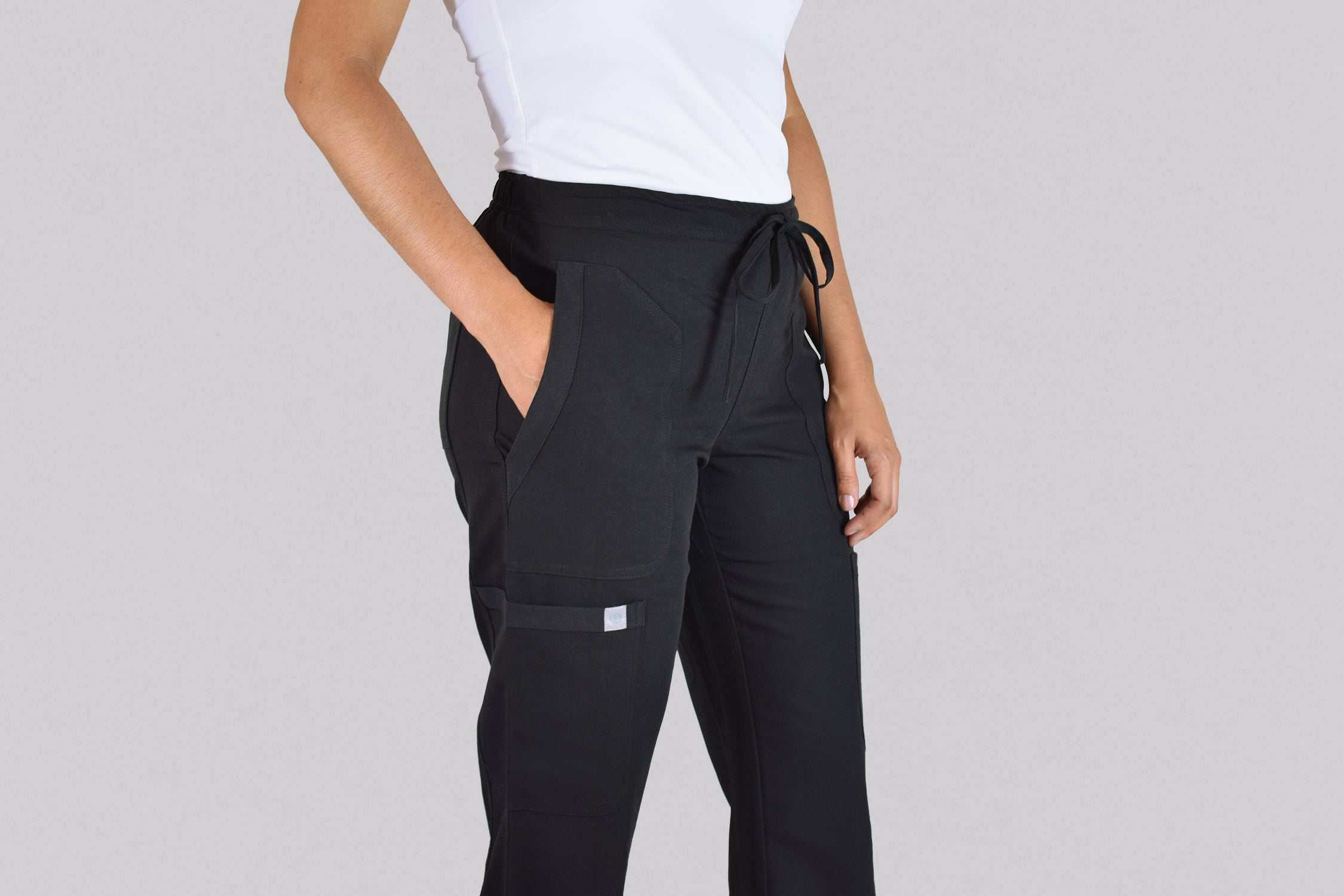 • Cintura elasticada y cordón ajustable.